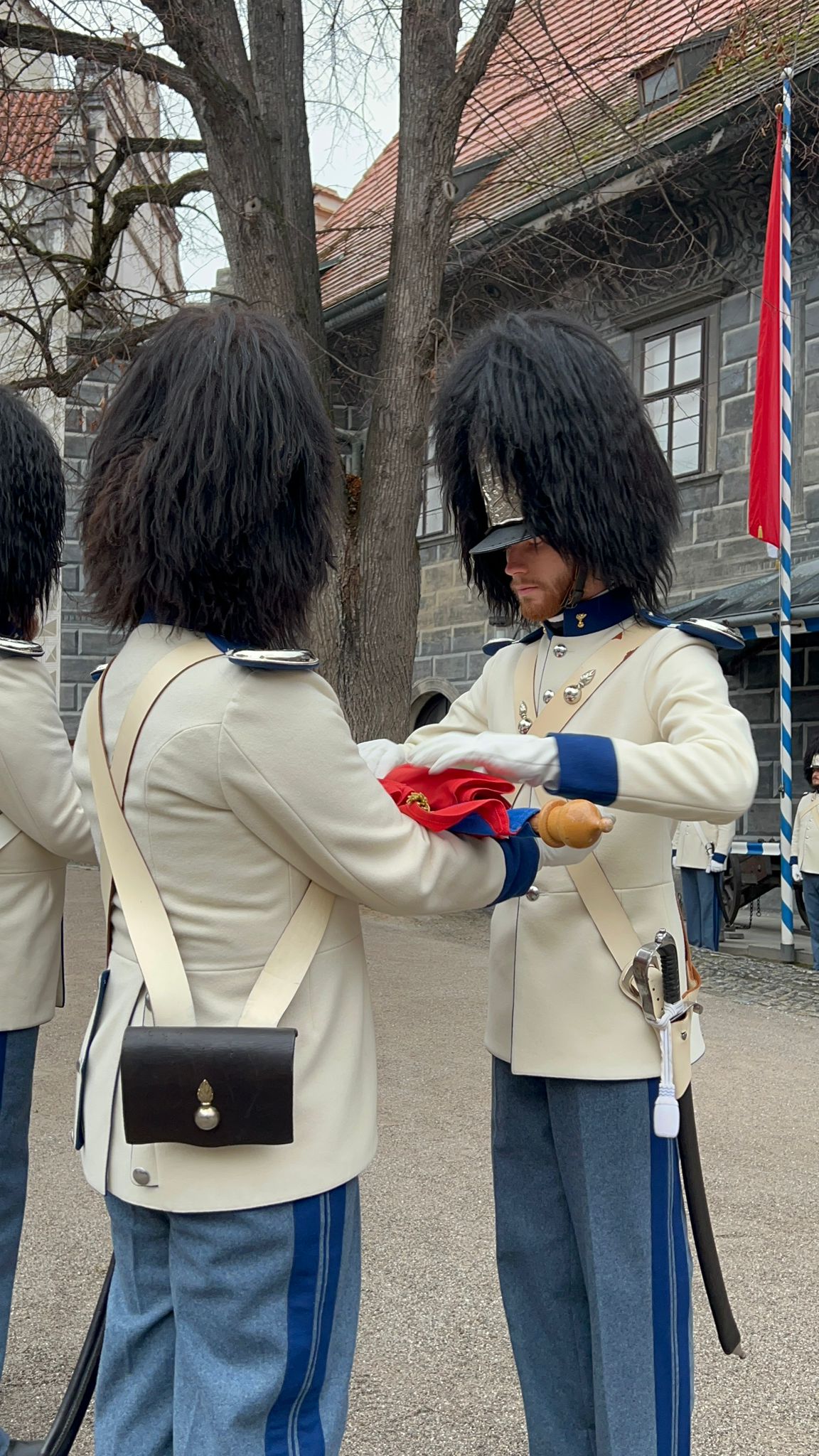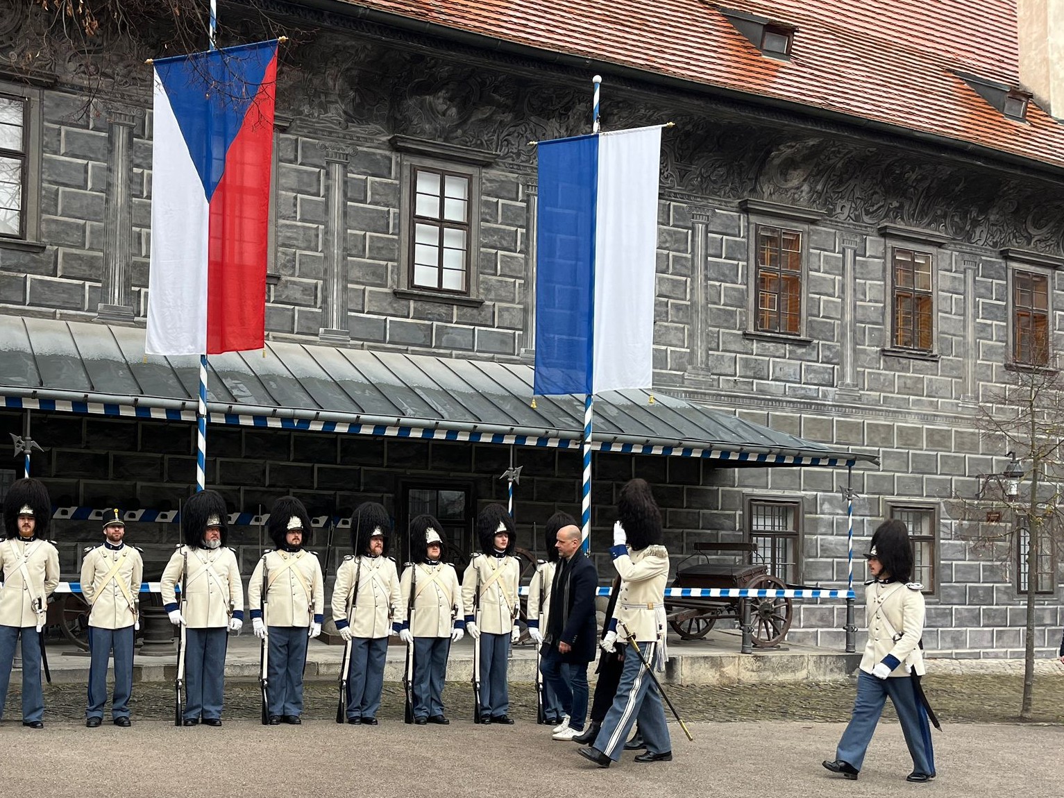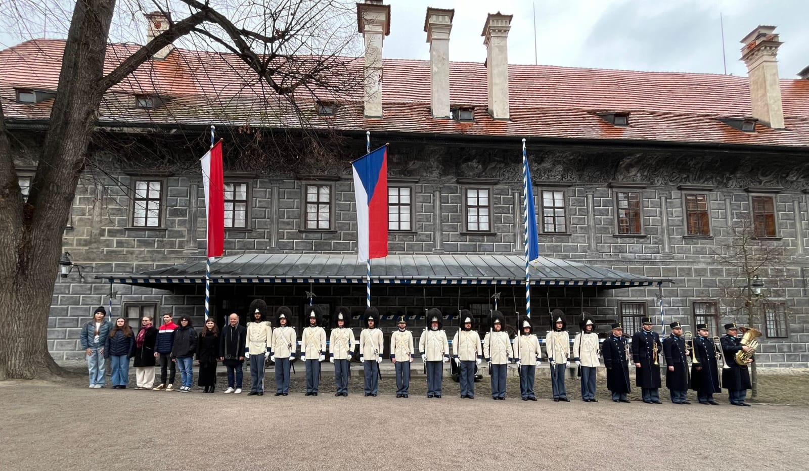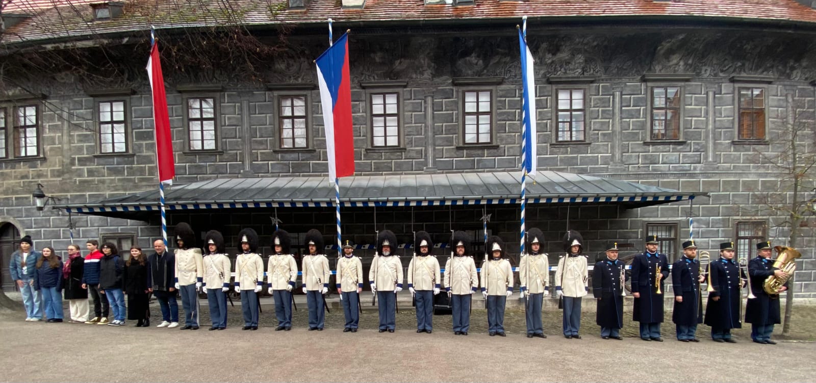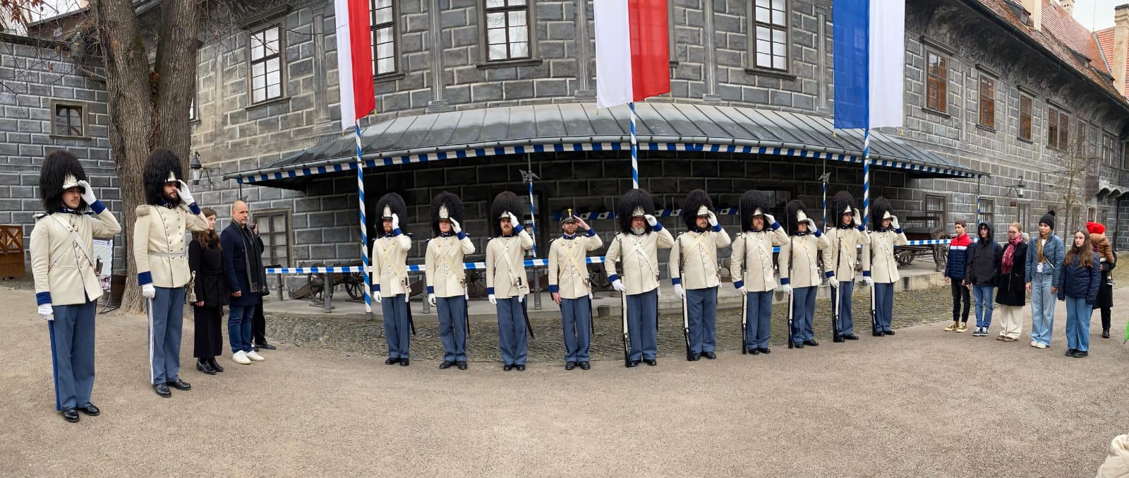 Ráno 17. listopadu LP 2025 u příležitosti státního svátku Dne boje za svobodu a demokracii vztyčili vévodští granátníci prapory na gardové strážnici na krumlovském zámku, a to v přítomnosti starosty města Český Krumlov, Alexandra Nográdyho, a místopředsedkyně Parlamentu dětí a mládeže Český Krumlov, Adély Laštovkové.