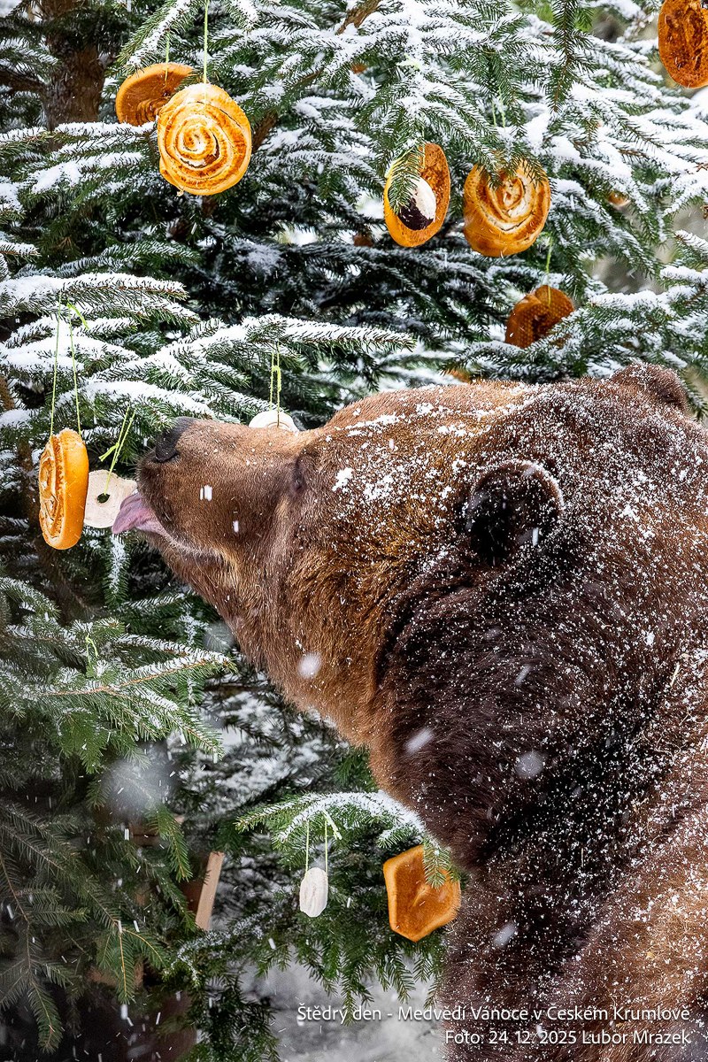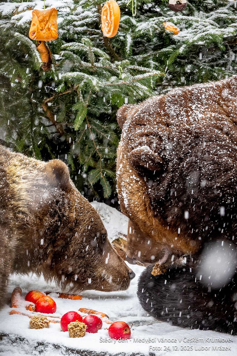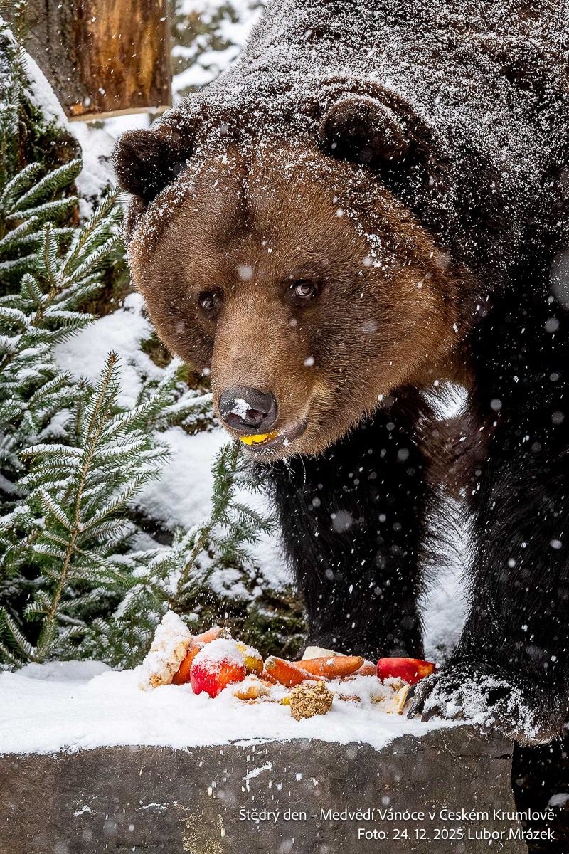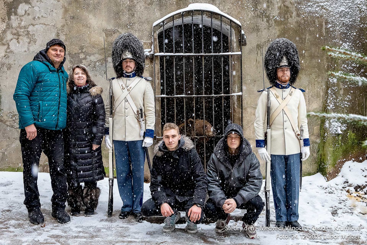 Na Štědrý den LP 2025 zažil Krumlov po mnoha letech vskutku pravé ladovské Vánoce. Při ranním nástupu granátníků, kteří jako každý rok zajistili ostrahu medvědího příkopu, začal padat první sníh – a v poledne, kdy gardoví trubači vytrubovali ze zámecké věže vánoční koledy, byly již všechny střechy ve městě oblečeny do bílého kabátu. Mnohokrát děkujeme všem Krumlovským i přespolním, že dorazili na Gardeplac podpořit krásnou tradiční akci, a rovněž i všem těm, kteří ze zasněženého Krumlova potleskem povzbuzovali granátníky na věži v jejich vánočním vytrubování.